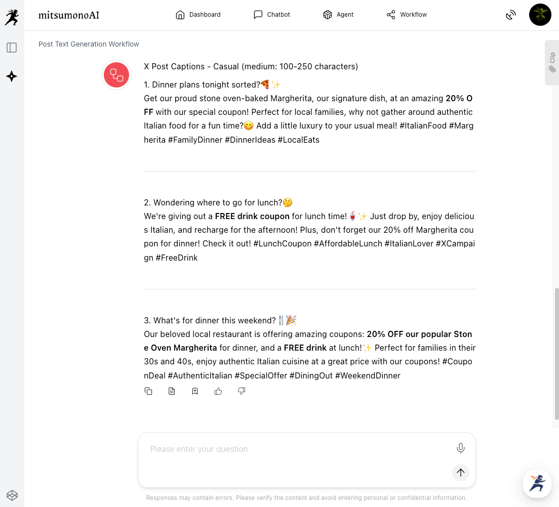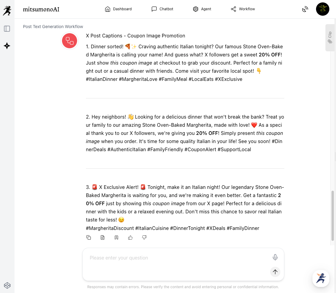 Revise the coupon image based on suggestions from the "Visual Creative Analyst." Post it on X combined with the adjusted text from the "Social Media Post Creation Workflow." (Try several patterns.) - Verification: