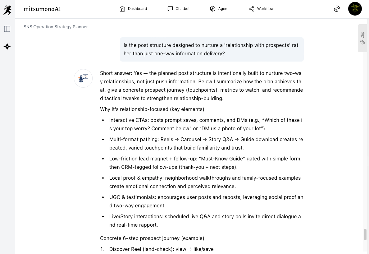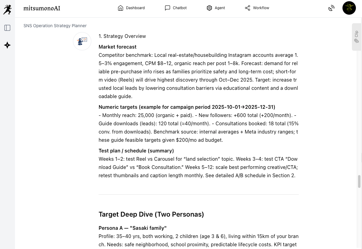 If it's difficult to execute the resulting SNS strategy exactly as outputted, feel free to ask the AI to make adjustments.