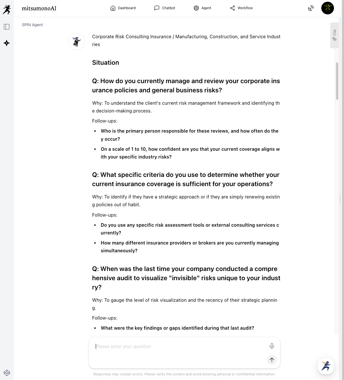 Spin Agent is more than just a tool for listing questions.