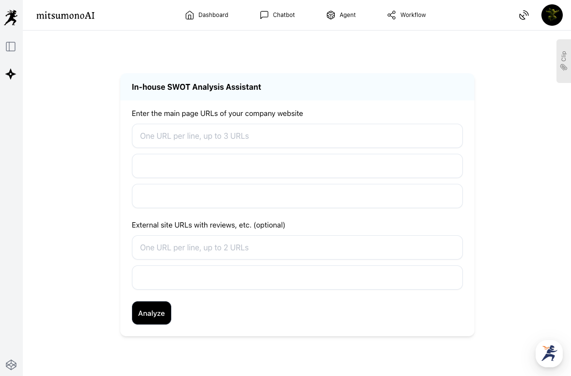 The In-house SWOT Analysis Assistant is a tool designed to unlock the full potential of SWOT analysis through the power of AI. By practicing these three tips, you can move beyond mere situational analysis to gain practical strategic hints.