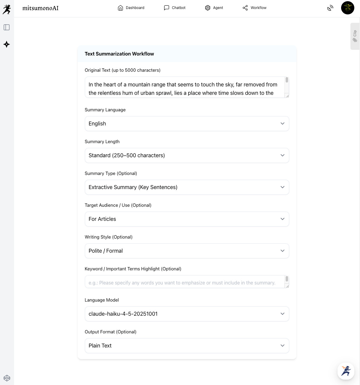 - Summary Type (Optional): Select "Extractive Summary (Focus on key sentences)" to serve as material for title generation.