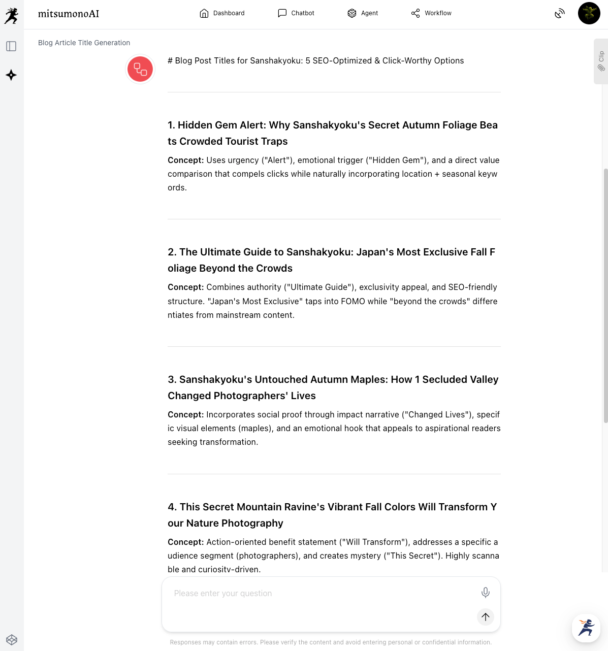 Learn how to revitalize existing content into high-performing assets using mitsumonoAI. By combining the Text Summarization Workflow and Blog Title Creation, you can significantly boost CTR and traffic without the cost of creating new articles from scratch.