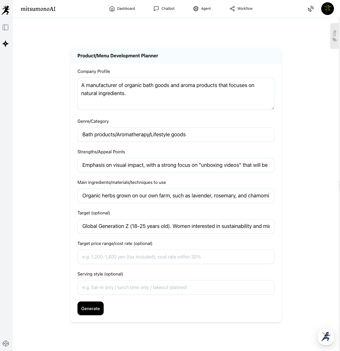No buzz for your quality product? You might be missing the "visual impact" Gen Z craves. mitsumonoAI’s Product/Menu Development Planner analyzes global trends to design products destined for unboxing videos. Turn your product into a Gen Z favorite with this new development process.