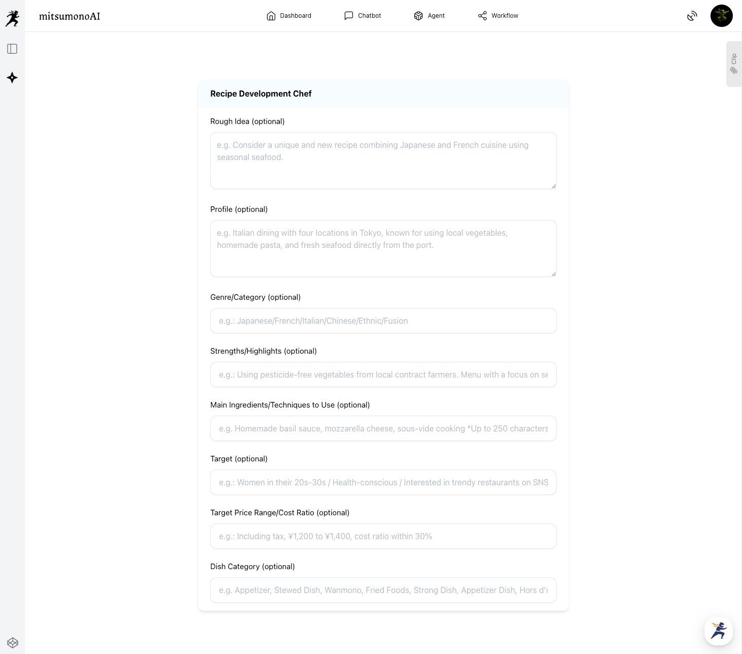 "We want the restaurant menu development process to be more creative and efficient." The "Recipe Development Chef" was added in response to feedback received from our users. By simply inputting a rough idea, it instantly generates professional-grade recipes, cost analysis, promotional strategies, and even reference image visuals. For more details on this innovative new feature, which fundamentally changes the standard approach to menu development, please see the article below. [New Feature] "Recipe Development Chef" Added to Agents The "Recipe Development Chef," which fundamentally changes restaurant menu development, has been added to mitsumonoAI. By simply inputting a rough idea, it instantly generates professional-grade recipes, cost analysis, promotional strategies, and reference image visuals.