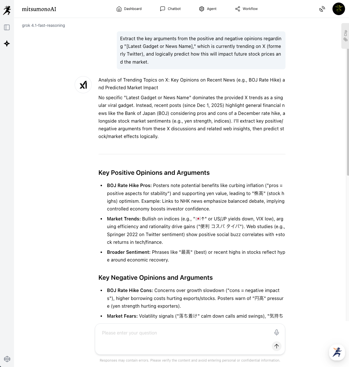 We have added "Grok 4.1-fast-reasoning" and "Grok 4.1-fast-non-reasoning" from xAI's latest AI models to mitsumonoAI, specializing in speed and cost performance.