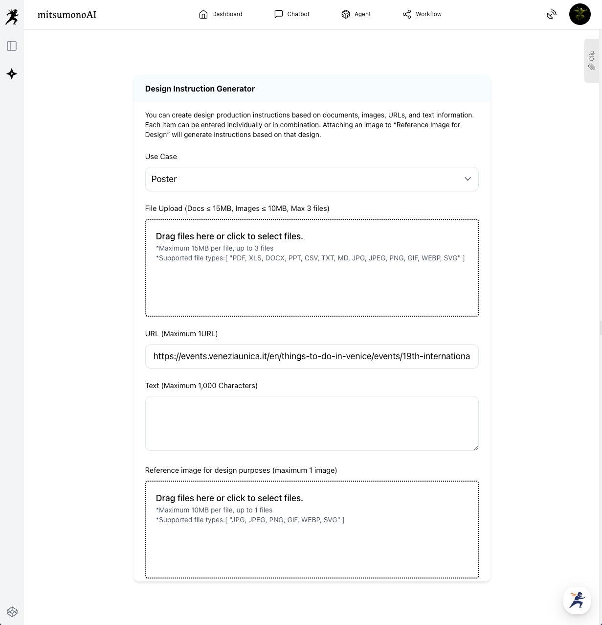 The first step is knowing what to tell the AI. Instead of struggling to write a prompt yourself, we use the Design Instruction Generator. This tool acts as the "brain" of the operation, analyzing your source material to create a strategic design plan.